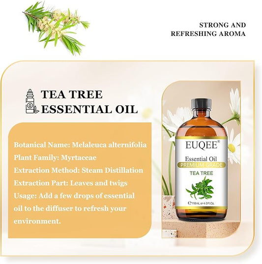 Australian Tea Tree Essential Oil (4 oz/118 ml) Premium Grade Australian Tea Tree Oil Essential, Perfect for Diffusers, Humidifier, Candle Making, Soap & Candle Making