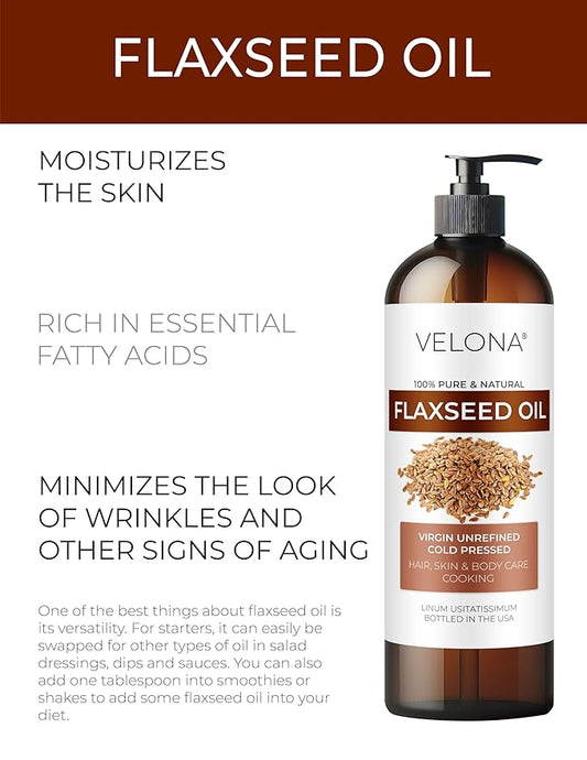 velona Flaxseed Oil - 16 Fl Oz | 100% Pure and Natural Carrier Oil | Unrefined, Cold Pressed |Body, Face & Skin Care | Use Today - Enjoy Results…