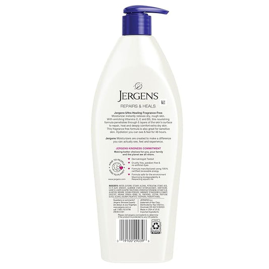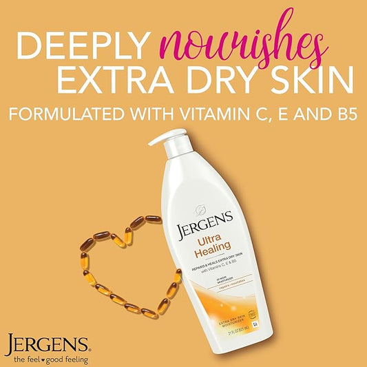Jergens Ultra Healing Dry Skin Lotion, Hand and Body Moisturizer for Quick Absorption into Extra Dry Skin with Hydralucence Blend, Vitamins C, E and B5, White, 21 oz