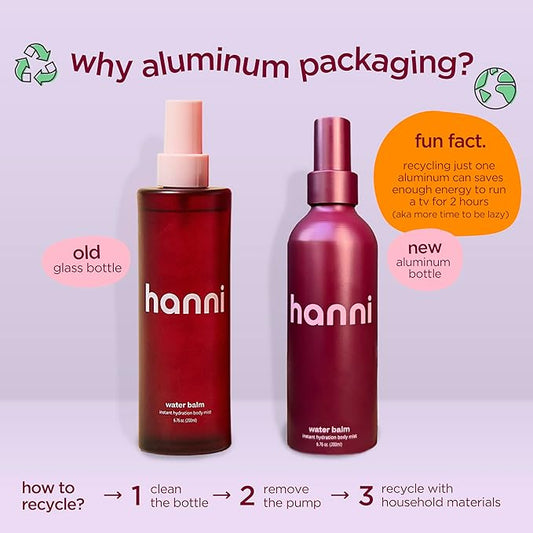 HANNI Water Balm Hydrating Body Mist, Moisturizer Spray with Hyaluronic Acid for All Skin Types, Lotion Replacement, 200 mL / 6.76 fl oz