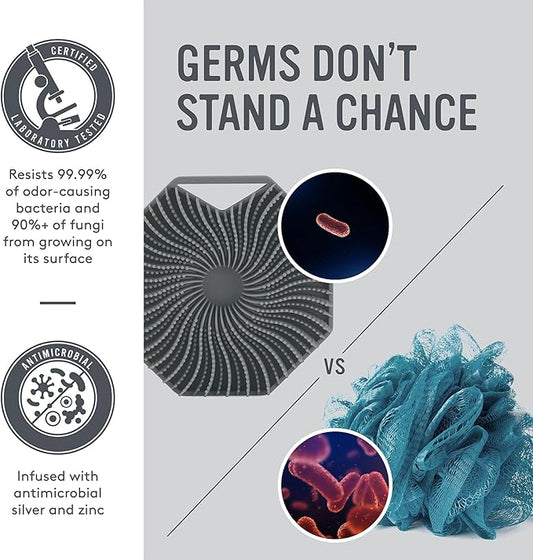 Sud Scrub® Antimicrobial Silicone Body Scrubber, Exfoliating Body Scrubber for Sensitive Skin, Eco Friendly Shower Scrubber for Body, Silicone Body Brush for Showering, Charcoal