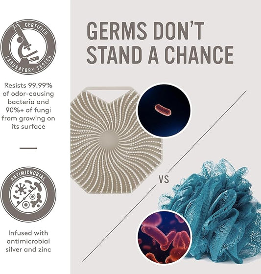 Sud Scrub® Antimicrobial Silicone Body Scrubber, Exfoliating Body Scrubber for Sensitive Skin, Eco Friendly Shower Scrubber for Body, Silicone Body Brush for Showering, Clay