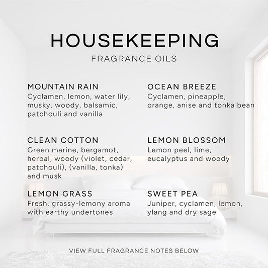 Eternal Essence Oils Housekeeping Set of 6 Premium Fragrance Oils - Includes Clean Cotton, Lemon Blossom, Lemon Grass, Sweet Pea, Ocean Breeze and Mountain Rain Scented Oils - 10ML