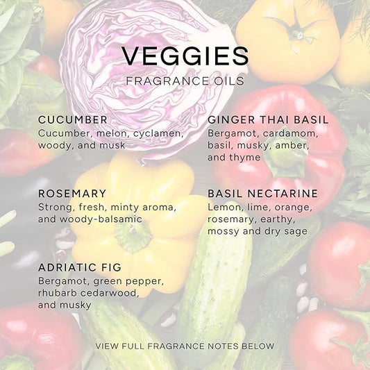 Eternal Essence Veggies Set of 6 Premium Fragrance Oils - Includes Cucumber, Avocado & Mint, Rosemary, Ginger Thai Basil, Basil Nectarine, and Adriatic Fig Scented Oils - 10ML