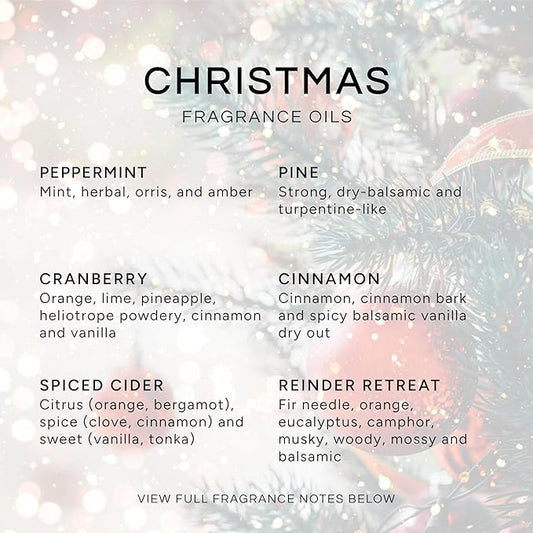Eternal Essence Oils Christmas Set of 6 Premium Fragrance Oils - Peppermint, Cranberry, Spiced Cider, Pine, Cinnamon and Reindeer Retreat - for Diffusers, Candle & Soap Making, & Aromatherapy - 10ML