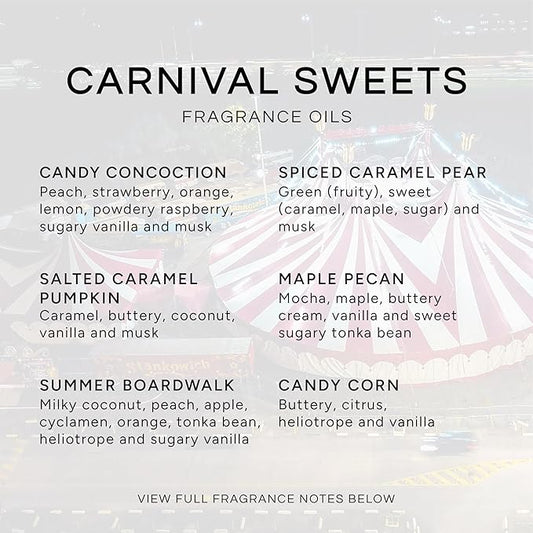 Eternal Essence Oils Carnival Sweets Set of 6 Premium Fragrance Oils - Candy Corn, Salted Caramel Pumpkin, Candy Concoction, Summer Boardwalk, Spiced Caramel Pear, and Maple Pecan Scented Oils - 10ML