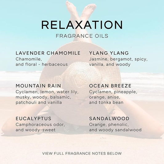 Eternal Essence Oils Relaxation Set of 6 Premium Fragrance Oils - Includes Lavender Chamomile, Ylang Ylang, Mountain Rain, Ocean Breeze, Eucalyptus, and Sandalwood Scented Oils - 10ML