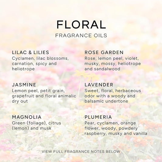 Eternal Essence Oils Floral Set of 6 Premium Fragrance Oils - Lavender, Lilac Lillies, Jasmine, Plumeria, Rose Garden, Magnolia Scented Oil - for Diffusers, Candle & Soap Making, & Aromatherapy