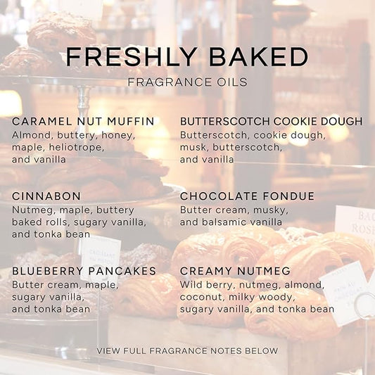Eternal Essence Oils Freshly Baked Set of 6 Premium Fragrance Oils - Includes Blueberry Pancakes, Caramel Nut Muffin, Butterscotch Cookie Dough, Cinnabon, Chocolate Fondue, and Creamy Nutmeg - 10ML