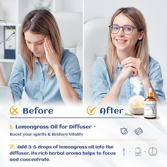 HIQILI 1 Fl Oz Lemongrass Essential Oil, 100% Pure Natural Undiluted for Diffuser, Hair - 30ml