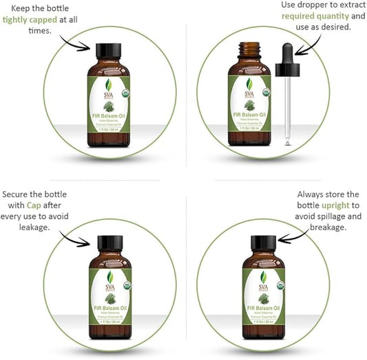 SVA Fir Balsam Essential Oil Organic – 1 Fl Oz – 100% Natural Organic Fir Oil - for Diffuser, Hair Care, Face, Skin Care, Aromatherapy, Scalp and Body Massage, Soap and Candle Making – with Dropper