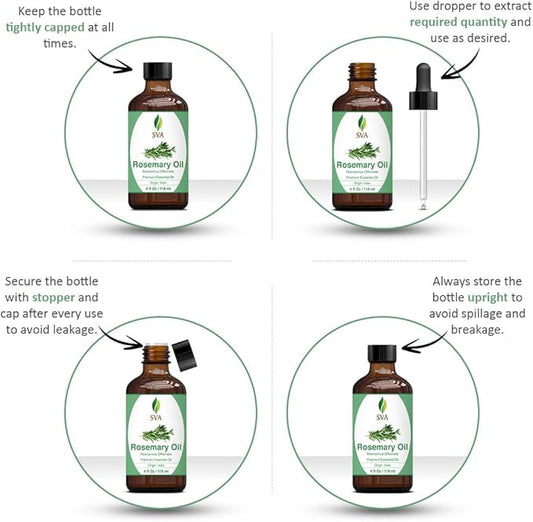 SVA Rosemary Essential Oil – 4 Fl Oz – 100% Natural Rosemary Oil for Hair, Face, Skin Care, Diffuser, Aromatherapy, Scalp, Body Massage, Soap and Candle Making – with Dropper
