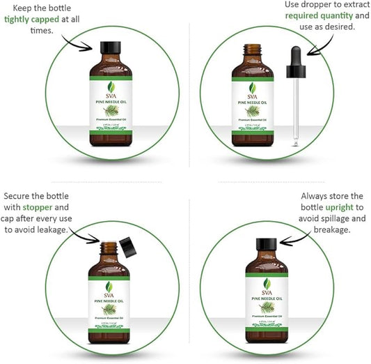 SVA Pine Needle Essential Oil – 4 Fl Oz – 100% Natural Pine Needle Oil - for Diffuser, Hair Care, Face, Skin Care, Aromatherapy, Scalp and Body Massage, Soap and Candle Making – with Dropper
