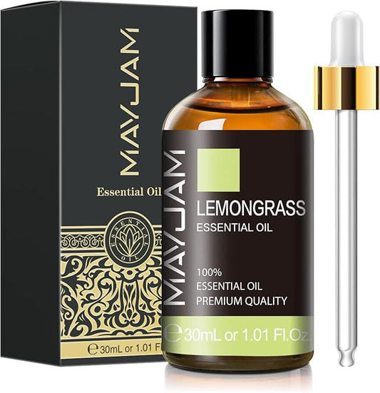 Lemongrass Essential Oil 30ML/1.01FL.OZ, MAYJAM Premium Lemongrass Oil Essential Oils with Glass Dropper, Great for Aromatherapy Diffuser and Candle Soap Making