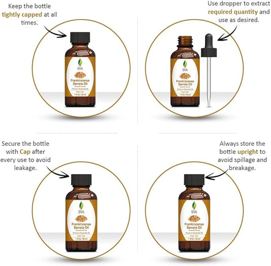SVA Frankincense Essential Oil – 1 Fl Oz – 100% Natural Boswellia Serrata Oil - for Diffuser, Hair Care, Face, Skin Care, Aromatherapy, Scalp and Body Massage, Soap and Candle Making - with Dropper