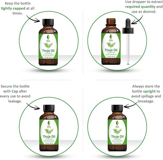 SVA Thuja Essential Oil – 1 Fl Oz – 100% Natural Thuja Oil - for Diffuser, Hair Care, Face, Skin Care, Aromatherapy, Scalp and Body Massage, Soap and Candle Making - with Dropper