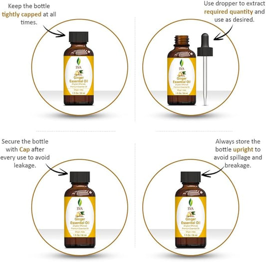 SVA Ginger Essential Oil – 1 Fl Oz – 100% Natural Ginger Oil - for Diffuser, Hair Care, Face, Skin Care, Aromatherapy, Scalp and Body Massage, Soap and Candle Making – with Dropper
