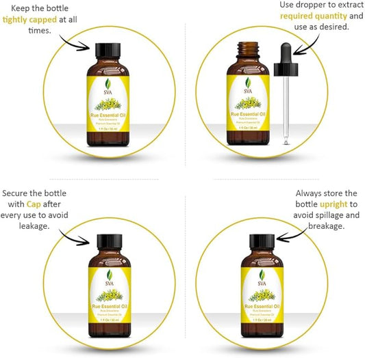 SVA Rue Essential Oil – 1 Fl Oz – 100% Natural Rue Oil - for Diffuser, Hair Care, Face, Skin Care, Aromatherapy, Scalp and Body Massage, Soap and Candle Making - with Dropper