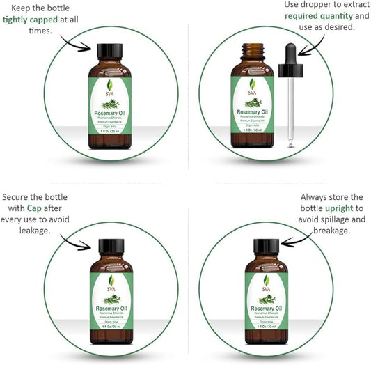 SVA Rosemary Essential Oil – 1 Fl Oz – 100% Natural Rosemary Oil for Hair, Face, Skin Care, Diffuser, Aromatherapy, Scalp, Body Massage, Soap and Candle Making – with Dropper