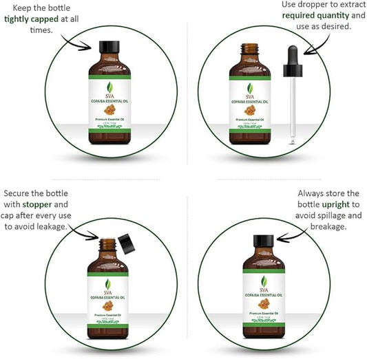 SVA Copaiba Essential Oil – 4 Fl Oz – 100% Natural Copaiba Oil - for Diffuser, Hair Care, Face, Skin Care, Aromatherapy, Scalp and Body Massage, Soap and Candle Making – with Dropper