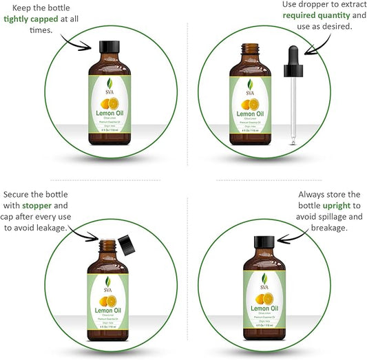 SVA Lemon Essential Oil – 4 Fl Oz – 100% Natural Lemon Oil - for Diffuser, Hair Care, Face, Skin Care, Aromatherapy, Scalp and Body Massage, Soap and Candle Making – with Dropper