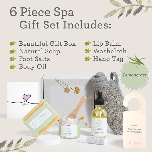 Lizush Lemongrass 6-Piece Spa Gift Set for Women - Relaxing Self-Care Basket, Luxury Handmade Body Care Items for Premium Relaxation - With Love - Handmade in the USA