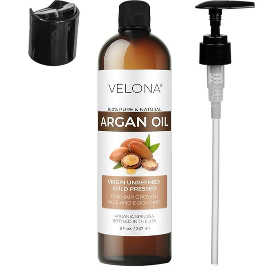 velona Argan Oil - 8 Fl Oz | Morocco Oil | Stimulate Hair Growth, Skin, Body and Face Care | Nails Protector | Unrefined, Cold Pressed | Cap Kit