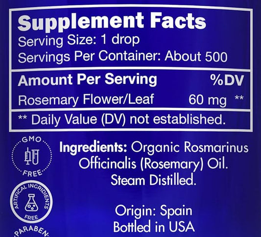 Organic, Rosemary Oil, Food Grade, for Hair, Growth โ 100% Pure, Edible, Rosemary Essential Oil, by Zongle Therapeutics, 1 OZ