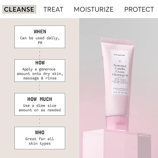 Naturium Camellia Creamy Cleansing Oil, Fermented Camellia Oil & Extract Plus Linoleic-Rich Oils, 3.5 oz