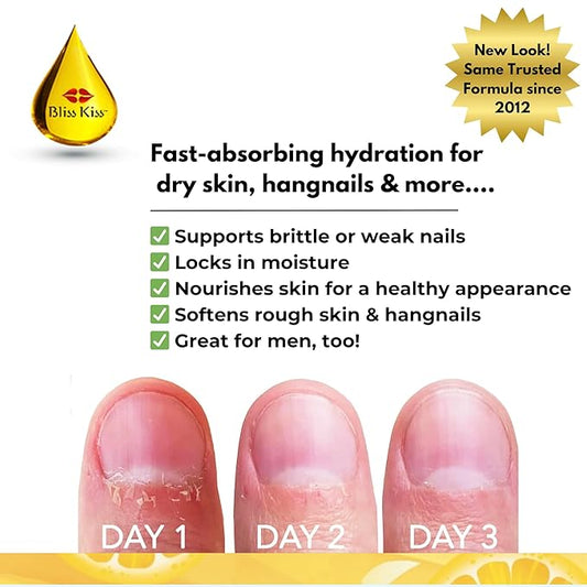 Bliss Kiss | Crisp Fragrance | Nail Oil Cuticle Dropper w/Vitamin E & Jojoba⏤Nail Strengthener Nail Growth Serum for Brittle Peeling Breaking Thin Nails | 0.5oz |