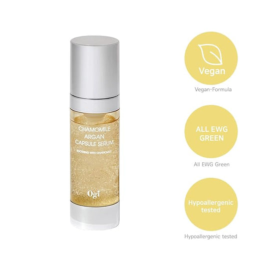 [Ogi] Chamomile Argan Capsule Serum, Vegan Serum, Mild Serum for Soothing, Moisturizing, Sebum Control & Anti-Aging, EWG Green, 1.01 fl. oz.