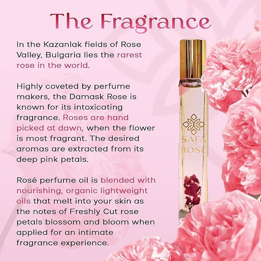 SAFA Rosé Organic Rose Oil Perfume Roller | Bulgarian Damask & Indian Rose Petals | 10 mL Fragrance Oil for Women & Men | Non-Toxic, Alcohol-Free, Natural Perfume Oil Roll-On