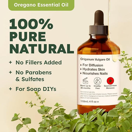 Kukka Oregano Essential Oil for Skin - 4 Fl Oz - 100% Pure Natural, Earthy & Herbaceous Scent, Perfect for Mother's Day Gifts, Diffuser, Nails, Candle & Soap Making DIY