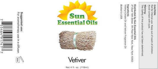 Sun Essential Oils Vetiver Essential Oil, 4 oz, for Aromatherapy – Vetiver Oil