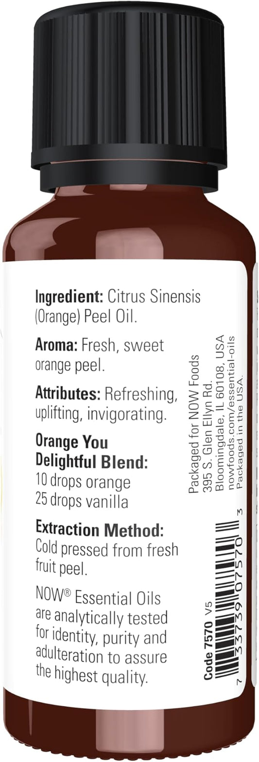 NOW Essential Oils, Orange Oil, Uplifting Aromatherapy Scent, Cold Pressed, 100% Pure, Vegan, Child Resistant Cap, 1-Ounce