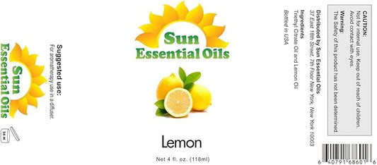 Sun Essential Oils - Lemon Essential Oil 4 oz for Cleaning, Diffuser, Humidifier & Aromatherapy Body Massage, Lemon Fragrance Scent for Home Candle Making with Dropper