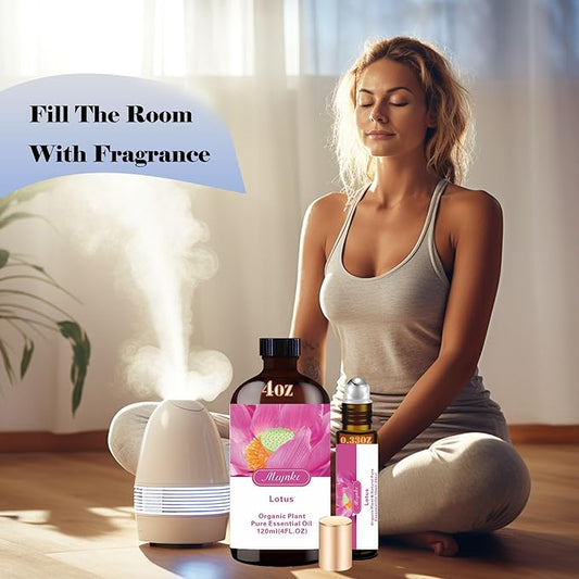 Lotus Essential Oil- Lotus Oil 4 Fl Oz & Roll On 10ML Essential Oil Set for Aroma Diffuser Humidifier Home Fragrance Bath SPA Yoga DIY Candle Making Soap Perfume Gift for Women