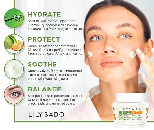 LILY SADO TEA+C™ Green Tea & Vitamin C Moisturizer - Antioxidant, Anti-Aging Anti-Wrinkle Daily Moisturizing Lotion - Hydrates, Softens, Firms & Tones for Luscious, Radiant Skin. For Women & Men