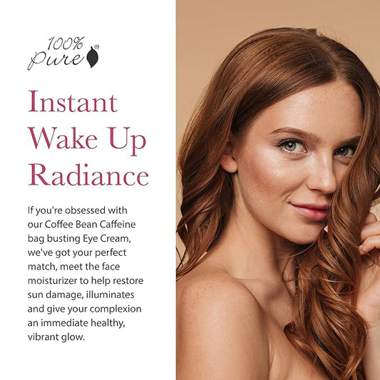 100% PURE Coffee Bean Caffeine Face Cream Glowing Skin Care Anti Aging Youthful Boost Caffeinated Facial Moisturizer with Hyaluronic Acid & Niacinamide for Women & Men - 1.7 fl oz