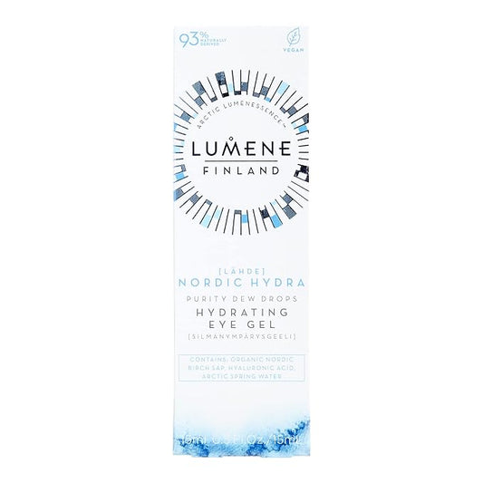 Lumene Purity Dew Drops Hydrating Eye Gel - Dark Circle Eye Cream with Hyaluronic Acid & Under Eye Serum + Puffy Eyes Treatment, 15ml