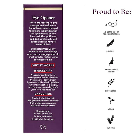 Womaness Eye Opener Anti Aging Eye Cream - Hyaluronic Acid & Bakuchiol Alternative Retinol Eye Cream for Dark Circles and Puffiness + Red Algae Extract to Firm & Revitalize Under Eye Bags (15ml)