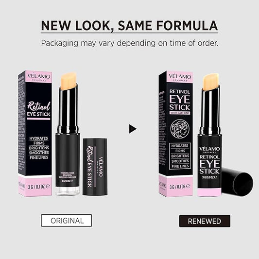 VELAMO ADVANCED Retinol Eye Stick: Retinol Eye Cream for Dark Circles and Puffiness with 1% Bakuchiol and Caffeine - Visibly Reduces Fine Lines Wrinkles Under Eye Bags with Upgraded Formula 0.1 OZ/3g