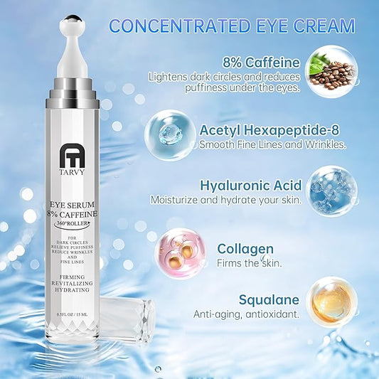 Eye Serum, Under Eye Cream For Dark Circles, 8% Caffeine Eye Serum For Women & Men, Eye Cream Anti Aging With 360° Massage Ball, Eye Cream For Puffiness And Bags Under Eyes, Eye Serum For Fine Lines