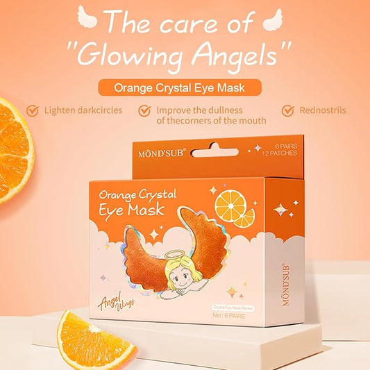 MOND'SUB Under Eye Mask - 6 Pairs Orange Crystal Eye Mask for Sleeping- Puffy Eyes & Dark Circles Treatments with Hyaluronic Acid, Reduce Under Eye Bags and Smooth Wrinkles, Brighten Complexion