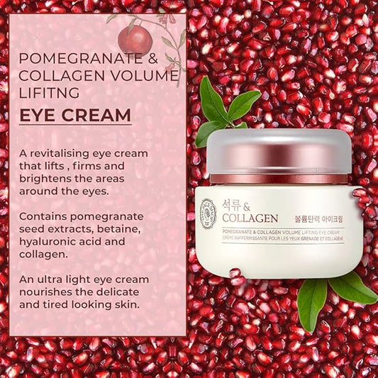 The Face Shop Pomegranate & Collagen Volume Lifting Eye Cream | Ultra-Light Eye Cream for Eye Skin Lifting, Firming & Brightening | Reduce Dark Circles | Deep Hydrating Under Eye Area, 1.69 Fl Oz