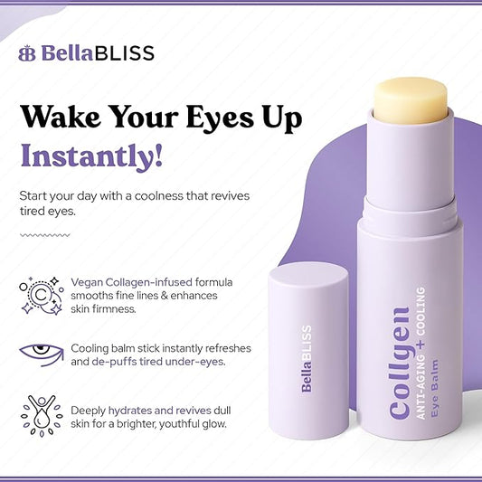 BellaBLISS Collagen Eye Balm Stick for Dark Circles, Puffiness & Wrinkles – Cooling Under Eye Cream with Collagen, Anti-Aging & Hydrating Formula – Made in Korea - 0.35 oz / 10 g - Pack of 1