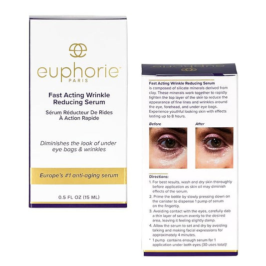 Euphorie Rapid Reduction Eye Serum - Advanced Formula - Anti Aging Serum Visibly Reduces Under-Eye Bags, Wrinkles, Fine Lines & Crow's Feet Instantly - Instant Face Lift Cream .5 Fl Oz (15ml)