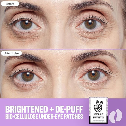 PEACE OUT Skincare Puffy Eyes, Biocellulose Under-Eye Mask, Minimize Puffiness & Tired Eyes with Caffeine and Niacinamide, Under Eye Patches for Dark Circles, 6 pairs