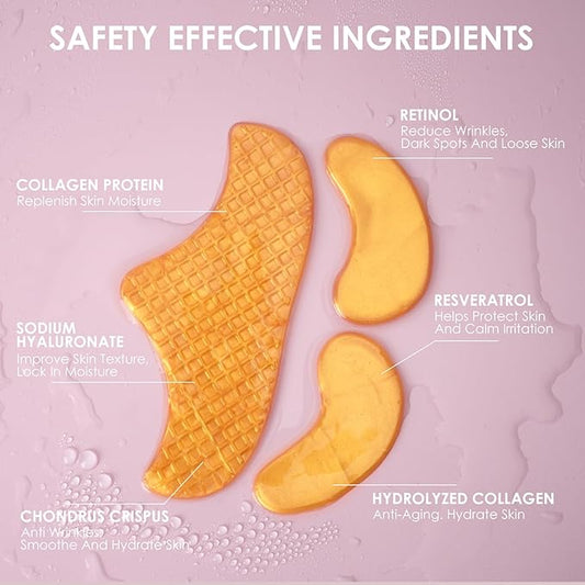 10PCS 24K Gold Forehead Anti Wrinkle Patches & 10Pair 24K Gold Eye Masks, Anti Wrinkle Patches with Collagen, Forehead Wrinkle Patches T-Zone Patch,Collagen Eye Patches for Puffiness and Dark Circles