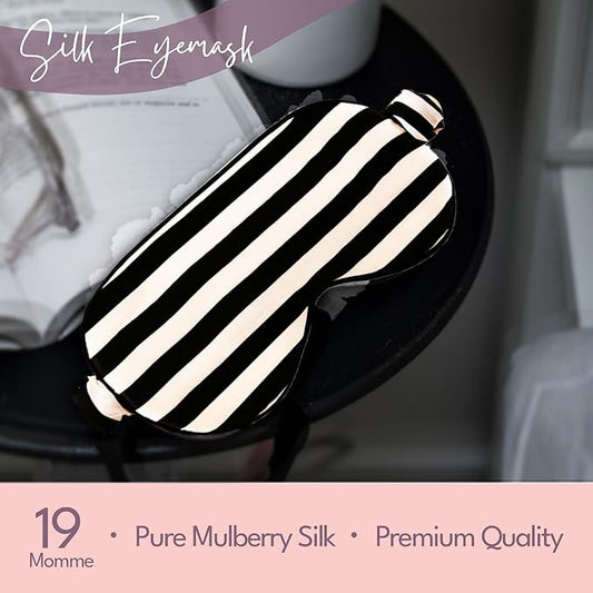 CELESTIAL SILK Mulberry Silk Sleep Eye Mask with Adjustable Elastic Strap (Adjustable, Black/White Stripe)